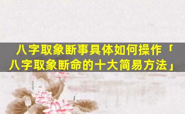 八字取象 🦟 断命 💮 的十大 🌹 简易方法