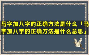 “马字加八字的正确方法”通“常”指“的”是汉字马和八 🐶 的正确写法。