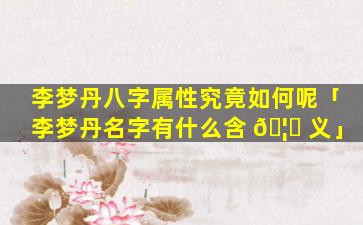 整体含义李梦 🌻 丹 🐺 这个名字寓意着: