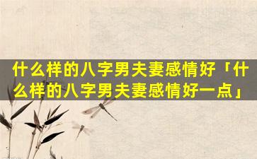 男 🐘 命八字夫妻 🕊 感情好一点的特征: