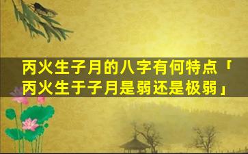 丙火生于 🐴 子月,水,旺火 🐝 灭身弱为寒 🐴 。