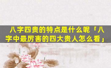 具 🦆 备四 🌺 贵特征的八字特点 🦁 :