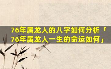 76年 🦋 属龙人 🐼 一生命 🦍 运