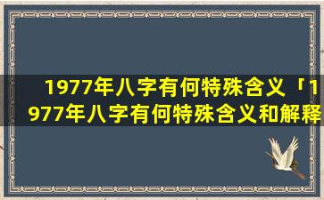 1977 年八字特 🦟 殊 🦟 含义:
