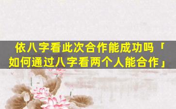 依 💮 八字推算合作成功与否,需,要提供当事人的八字资 🐬 料包括出生年月日时和性别。如,果 🐵 。没有这些信息无法准确判断合作是否能成功