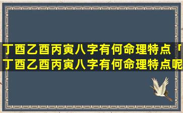 出生于丁酉乙酉丙寅八字 🐶 的人命理特点: