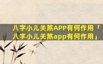 “八字小儿关煞 🐈 ”应用程序的作用: