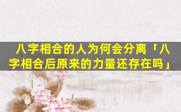 八字相合后,原,来的力量是否还存在取决于相合的具体方式和 💐 程度: