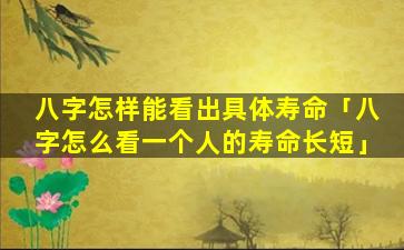 从 🐱 八字看 🌷 寿 🦋 命长短