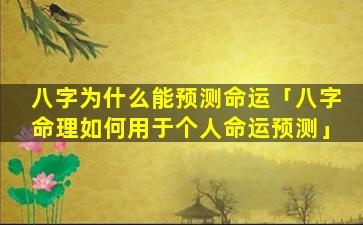 八字 🌴 命理 🐒 用 🌴 于个人命运预测的方法