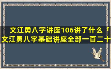 文江勇八字基 🦄 础讲座第一百零六讲