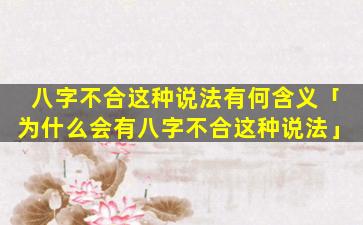 八 🪴 字不合的说法源自中国传统 🌲 文化中的命理学,指两个人 🌴 出生时的八字(包括年、月、日时、相)克,相冲会给彼此带来不吉利或阻碍。