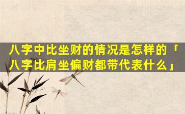 比肩代表命主的才能和能力,财星代 🐡 表财富比。坐,财,说。明命主有赚 🐅 钱的本事善于理财能够通过自己的努力取得财富