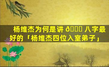 杨 🐧 维杰因以下原因被 🦟 认为是讲八字最好的: