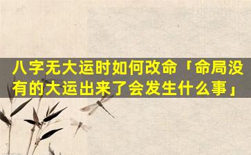 八字无大运时 🦍 的改 🦋 命方 💮 法