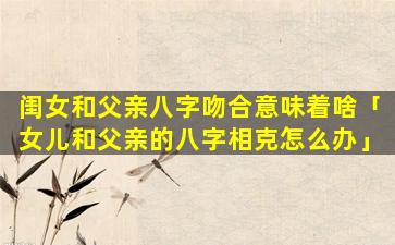 女儿和父亲八字相克 🦋 的处 🐝 理方法