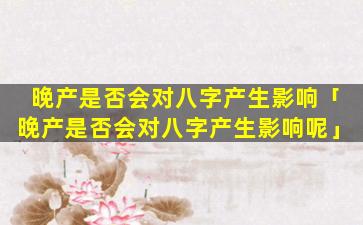 八字学中,晚,产一般不会对八字产生影响但存在一些特 🐞 殊情况: