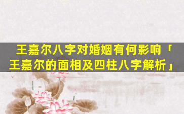 王嘉 🦢 尔的 🐵 八字信息尚未公开 🦁 ,因此无法推算其妻子的姓氏。