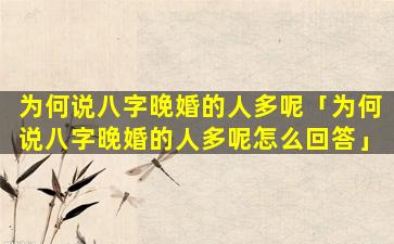 八字晚婚 🦆 的人较多的原 🦄 因 🍁 :