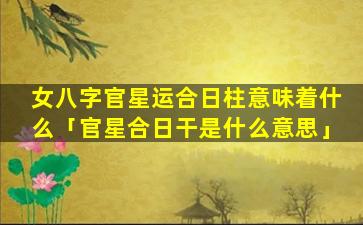 在八字命理学中,“女八 🍀 字官星运合日柱”指,女性的八字命盘中官星与日柱相合。