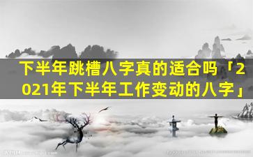 因此,是,否下半年适合跳槽需要结合个人的八字命局和流年运势进 🕷 行具体判断。建,议,咨。询专业命理师进行详细的八字分析以获得更为准确的建议
