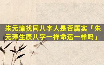 传说中 🐎 的朱 🕷 元璋寻找八字 🐧 相同的人