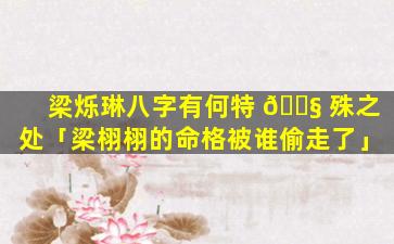 梁烁琳的八字具有食神生财财、库 🌹 、逢生、金、水、相生羊刃遇合寅申冲合丑未冲等特殊之处,利、于财,运事业和学业的发展但要注意情绪控制和家庭稳定。