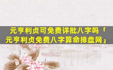 是 🐞 。您可以免费 🦊 在“元亨利贞”网。站上详批八字该网站提 🐛 供免费的八字详批服务,包括:
