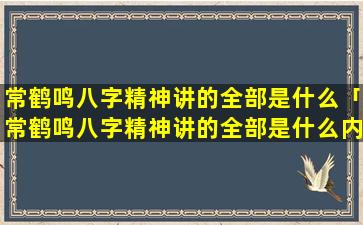 常鹤鸣八字精神讲的全部 🐟 内容如下 🌾 :