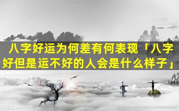 “八字好运不好”是指一个人八 🌼 字命理组合良好,具,有,富贵或成功等有利信息但在实际运势中却遭遇阻碍或不如意未能享受到八字所预示的吉利。