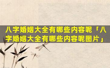 八字 🐶 婚 🪴 姻大全一般包含以下内 🐈 容: