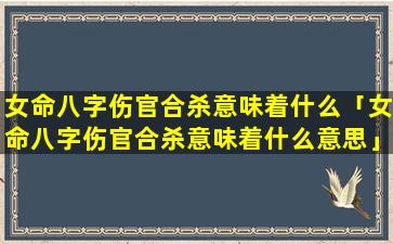 伤官合杀,是,指女 🕷 命八字中同时出现伤官和七杀并且伤官与七杀相 🌿 合的情况。
