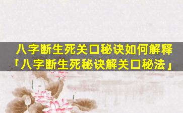 八字 🦁 推 🐡 断生死关口只是辅助手 🐴 段,不可盲目迷信。
