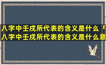 八字命理 🦆 中壬戍代 🐵 表的含义: