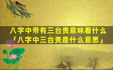 在八字命理中,“三 🕷 台 🦊 ”是“一”组由寅午戌三个地支组成的贵人星。如,果“一个人的八字中同时带有这三个地支则称为三台贵”。