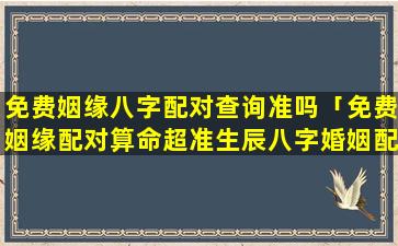 结论:免费在线姻缘八字配对查询可作为一种 🦆 娱乐或参考工具,但其准确性不能保证对。于,重。要的决策最好 🐵 咨询专 🐳 业命理师
