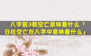 “八字前3都空亡”是指一个人的生辰八字中前三个 🐦 时辰(子、丑、寅都)处“于空亡”的状态。在八 🌼 字命理中空亡是一,种,特。殊的命局格局代表着相应时辰的五行生克力量减弱或消失