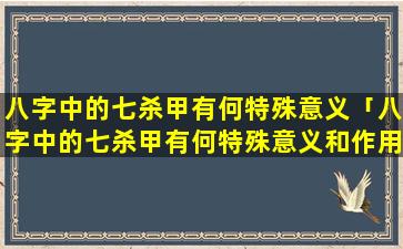 七杀 甲 在八 🦆 字中 🐴 的特殊意义和作 🐦 用