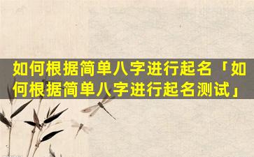 如何根据 🐎 简 🕷 单八字进行起名测试