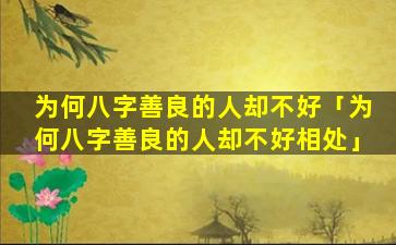 八 🌹 字善 🦆 良的人也可能会有不顺的情况 🌷 ,这与以下因素有关: