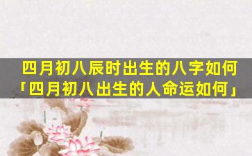 农历四 🦟 月初 🐵 八 🍁 出生的孩子运势