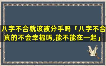 结论八字不合的说法没有科学依据。婚姻的幸福 🦄 与否取决于多种因素,包括性格、价。值,观,和。沟通技巧如果两个人真心相爱并且具有良好的婚姻基础那么即 🦍 使八字不合也可能拥有一段幸福的婚姻