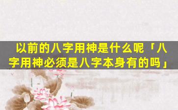 八字中的用神,是指生扶 🌾 日主、补救日主八字中不足之处的神煞不。同的八字,其用神。也不同因此,“以前的八字用神是什么呢”无,法。明确回答需要 🐞 根据具体八字进行分析