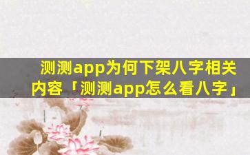 测测 App 自身也可能出于以下原因下架八字相 🌾 关内容: