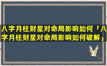 月柱 🐒 财星对命局的破 🦅 解 🍁 读法