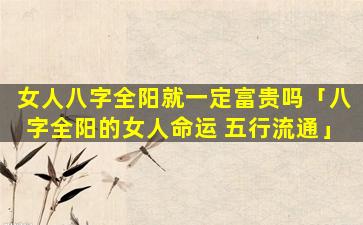 八字全阳的女人并 🦊 不一定都是命运 🐈 坎坷,关键在于五行流通是否平衡。