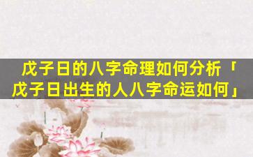 戊 🐼 子日八字命理 🐝 分析 🌷