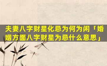 财星 🐅 为忌 🌸 对 🐈 婚姻的影响: