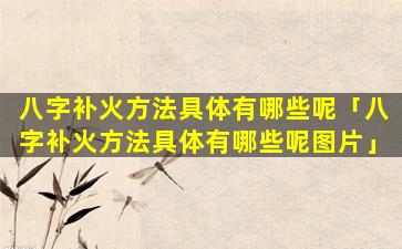 注意:八字 🦅 补 🌵 火时要适 🐡 可而止,避免火气过旺。