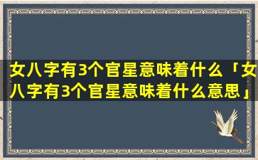 在八字命理学中,官星通常代表女命丈夫、地、位事业等 🐳 女八字中。出现3个,官,星说明命主在感情 🌸 婚姻方面较为复杂可 🐒 能会有以下几种情况: